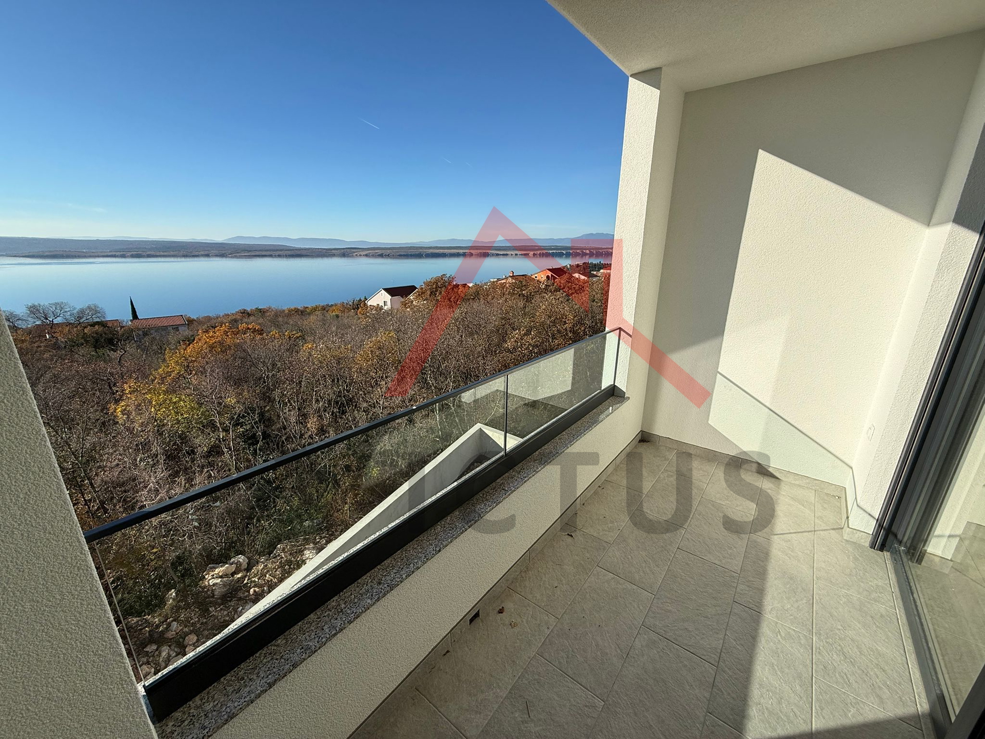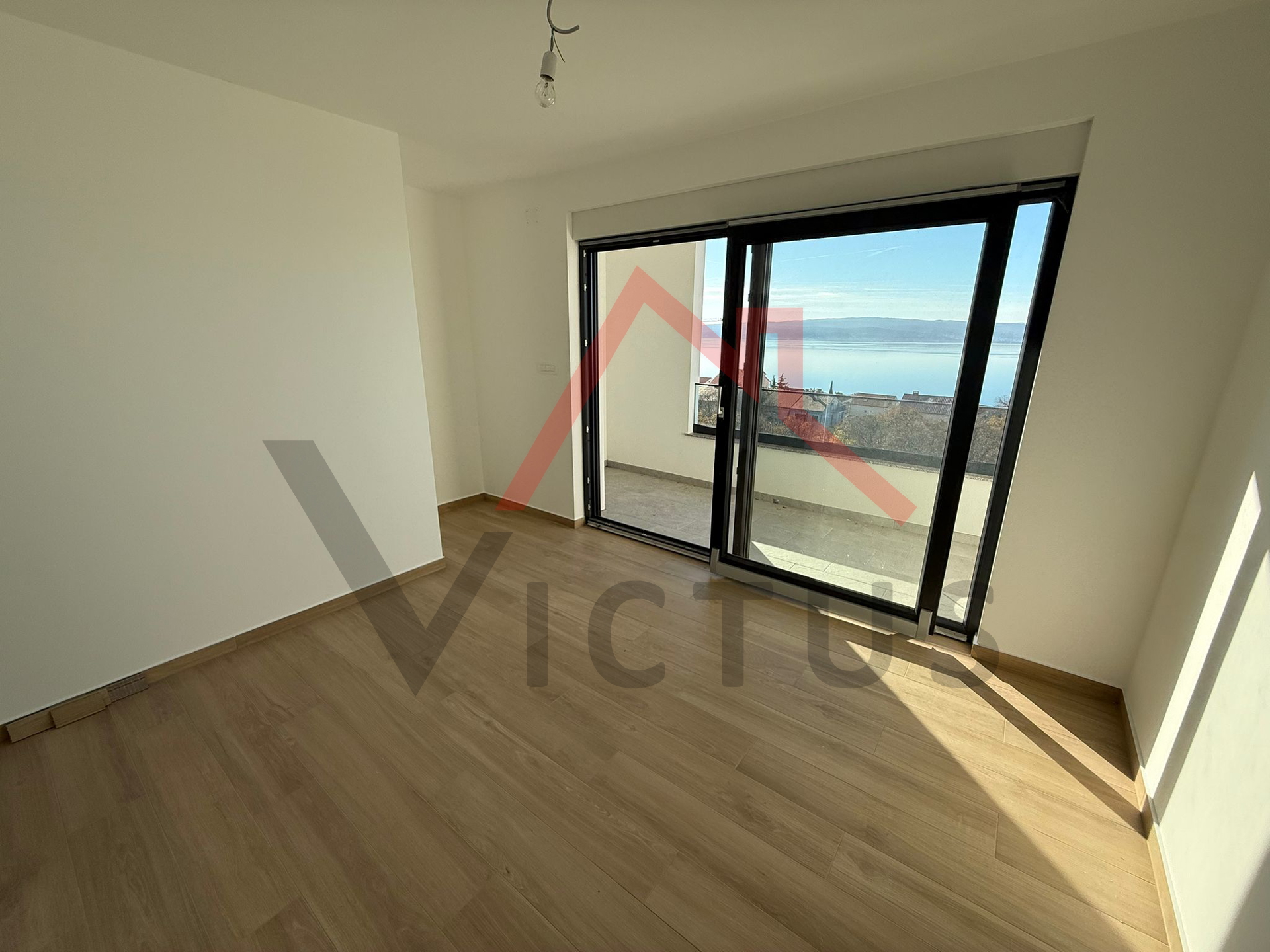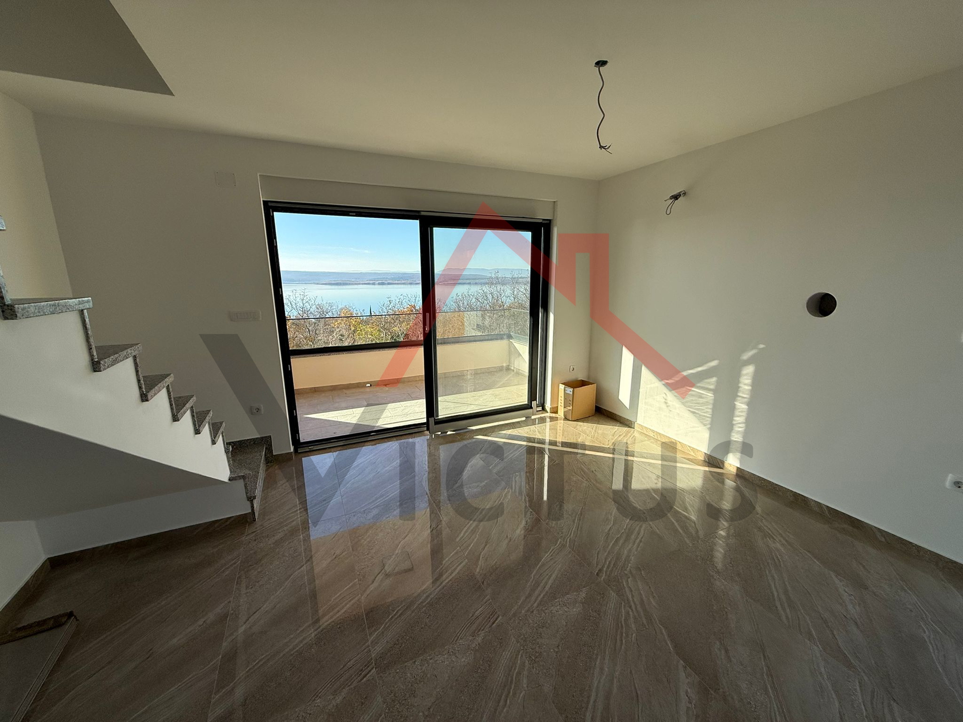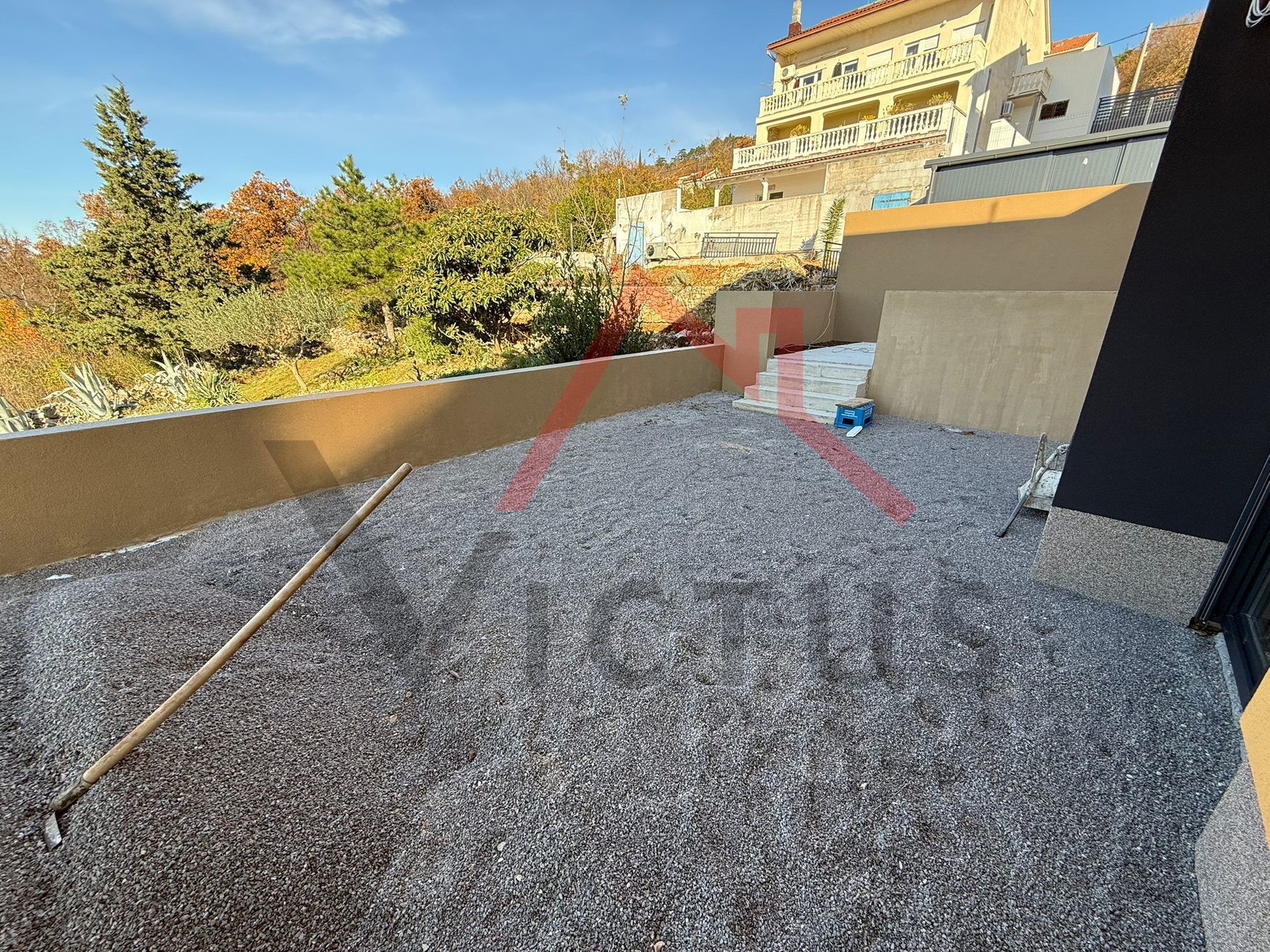 Wir verkaufen eine zweistöckige Wohnung mit 85 m² in einem Neubau. Die Wohnung erstreckt sich über zwei Etagen, die durch eine Innentreppe verbunden sind. Sie befindet sich in einem Gebäude mit nur zwei Wohneinheiten. Im Erdgeschoss der Wohnung befinden sich ein Badezimmer, eine Küche mit Essbereich und ein Wohnzimmer mit Zugang zur Terrasse. Im Obergeschoss befinden sich ein Badezimmer und zwei Schlafzimmer, die ebenfalls Zugang zur Terrasse haben, von der aus man einen Panoramablick auf das Meer und die Insel Krk genießt. Zur Wohnung gehören außerdem ein Teil des Gartens sowie ein Parkplatz.