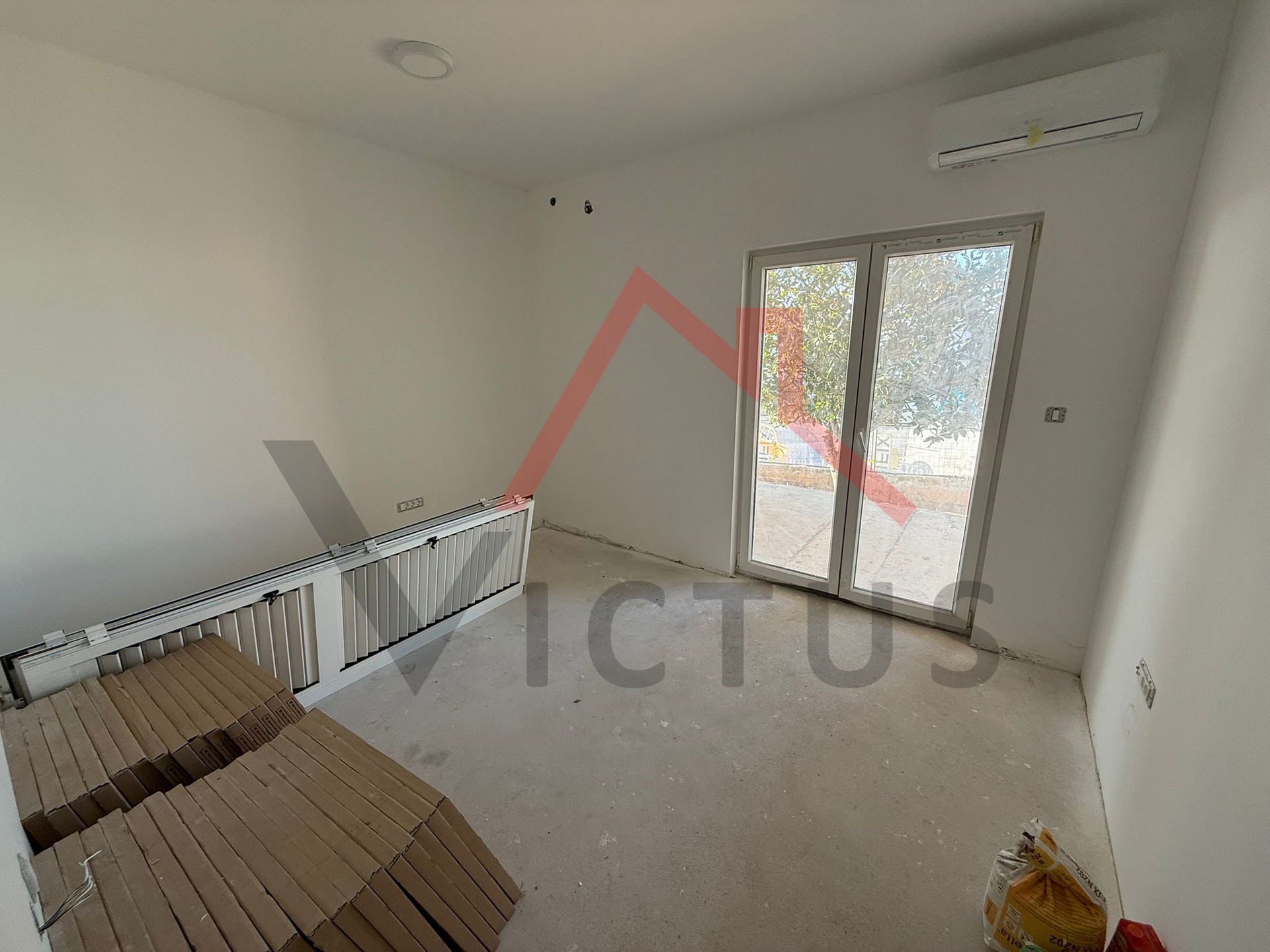 Die Wohnung besteht aus einem Wohnzimmer mit Küche und Essbereich, einem Schlafzimmer, einem Badezimmer sowie einer Loggia mit einer Fläche von 9 m2. Ein Parkplatz mit Eigentumsrecht von 12,50 m2 ist ebenfalls vorhanden.