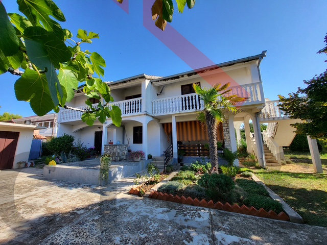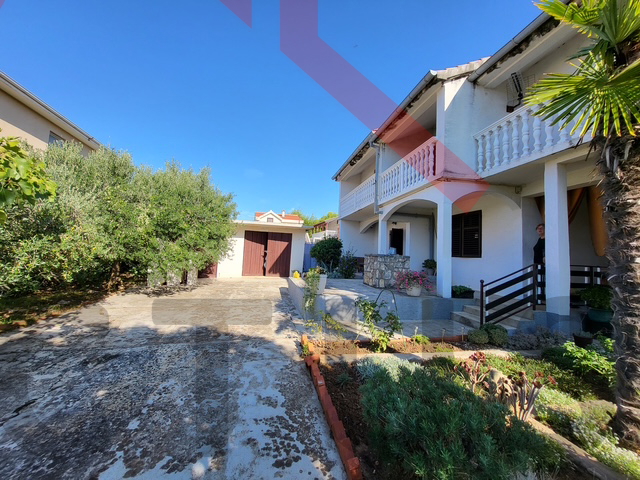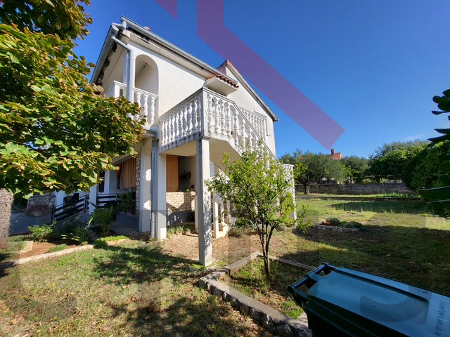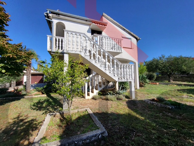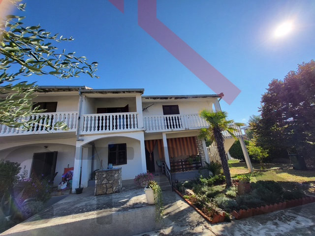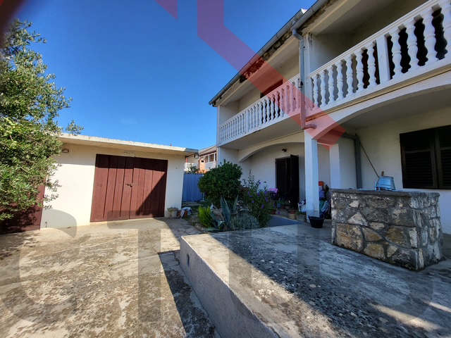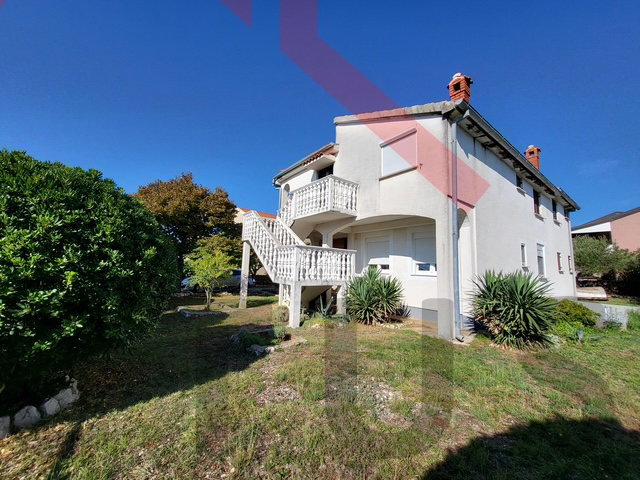 On the ground floor there are two apartments, while the first floor is in a rough construction state and according to the plan also has two apartments. The house is located in the middle of a fenced area, has two separate entrances to the yard, and enough space to build a swimming pool.
