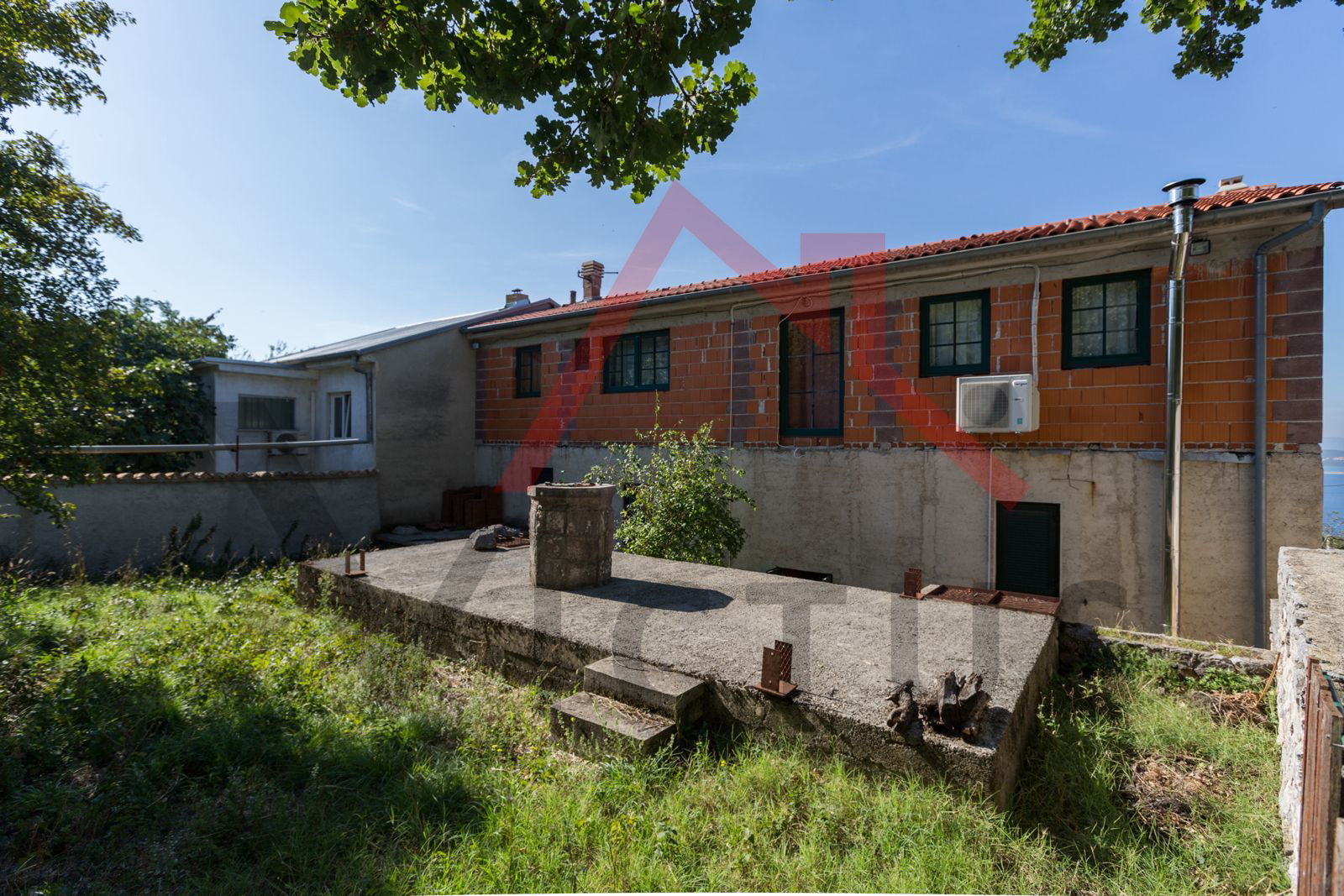 In an elevated and beautiful location, 800 m from the sea, beach, center, and all necessary amenities for living, we are selling a house with a yard and a garage.