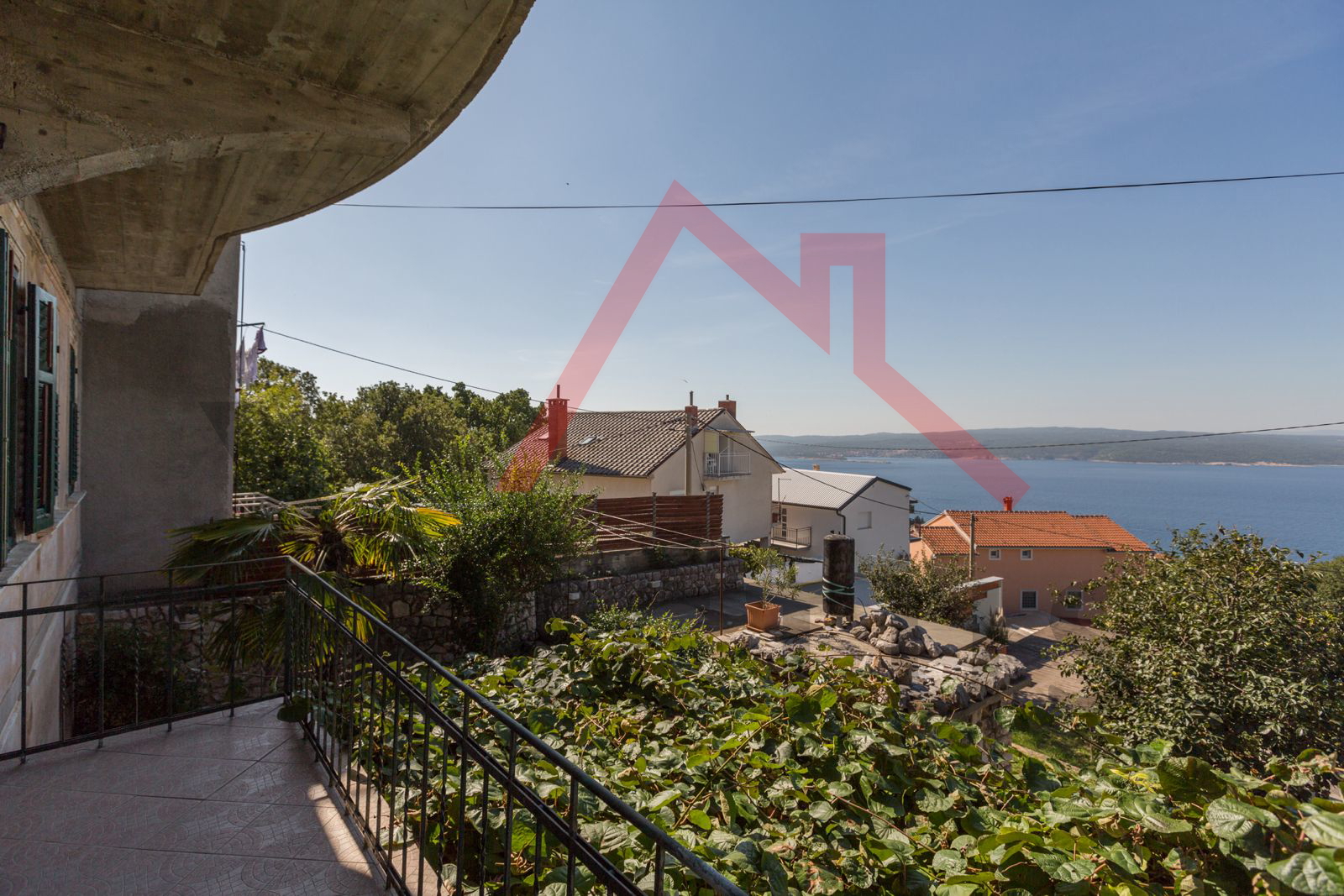 The second floor consists of a living room, kitchen, two bedrooms, two bathrooms, and a terrace with a beautiful view of the sea and the island of Krk.