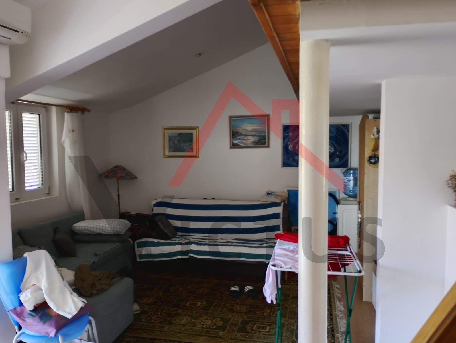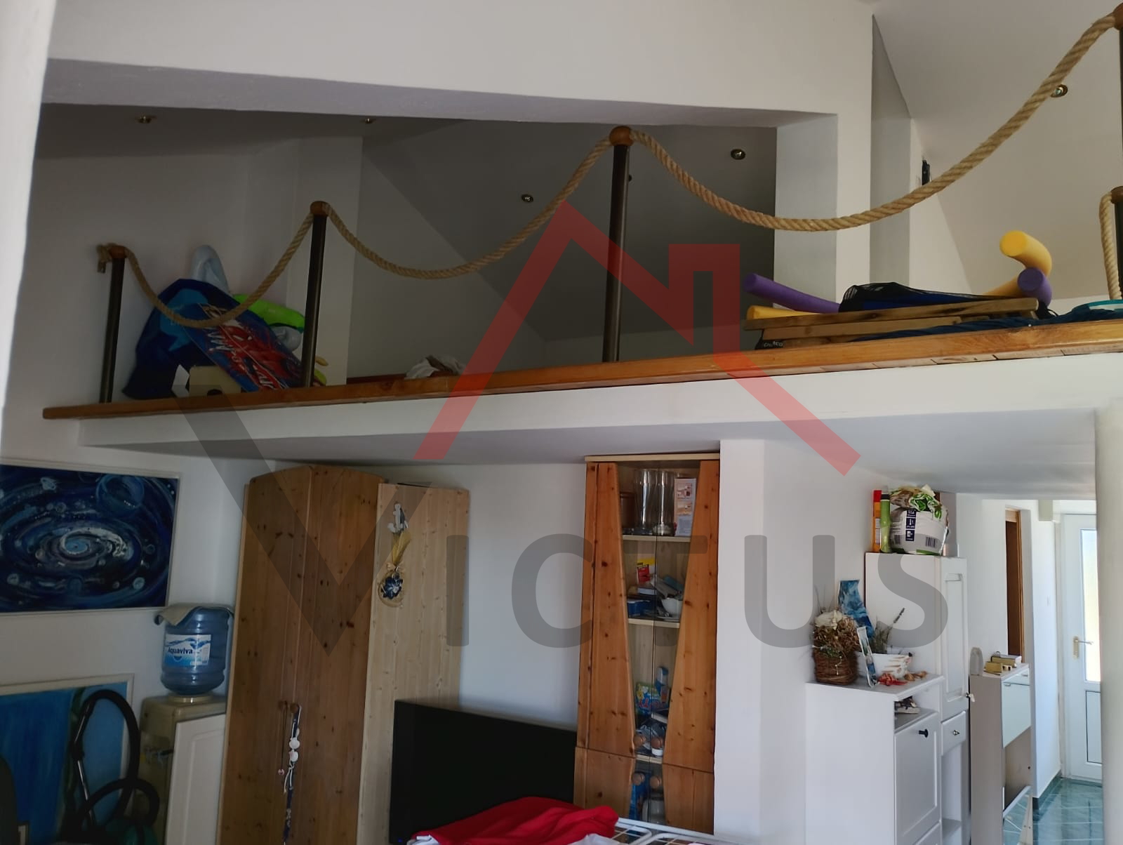 Stan se sastoji se od hodnika, dnevnog boravka s kuhinjom i blagovaonicom, dvije spavaće sobe, kupaone i lođe s pogledom na more. Stan se nalazi na mirnoj lokaciji, ima svoj posebni ulaz te pripadajući parking. Udaljenost od mora iznosi oko 600 metara.