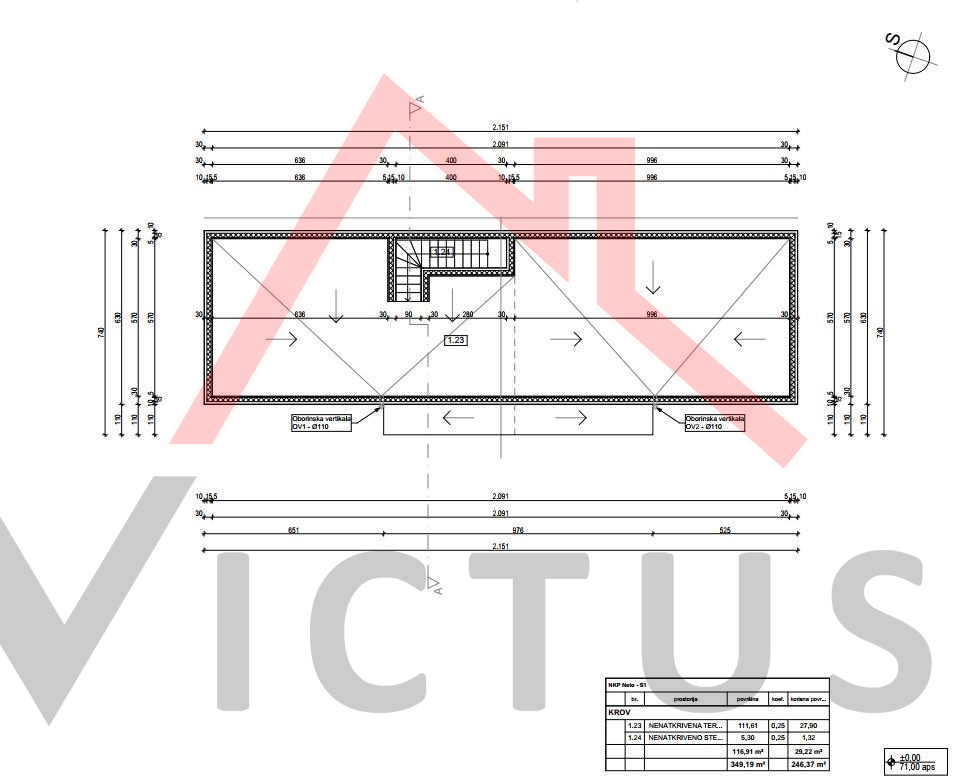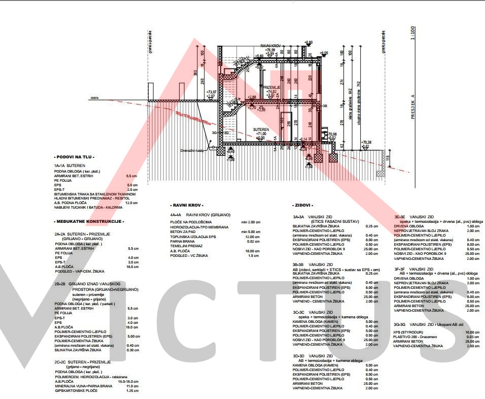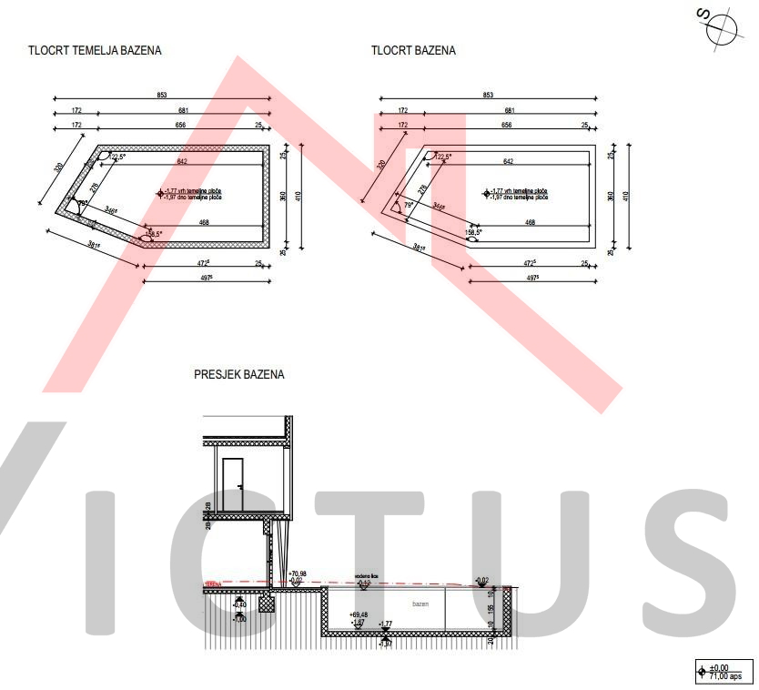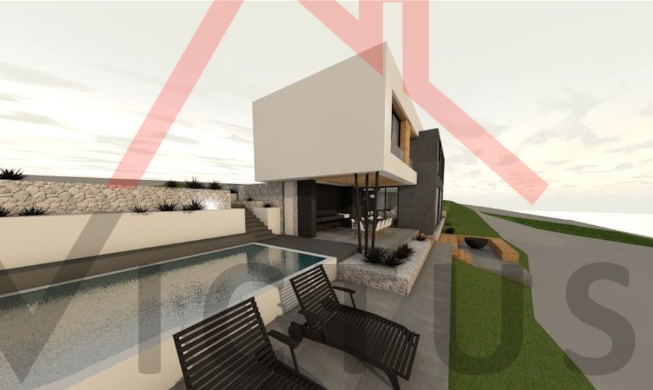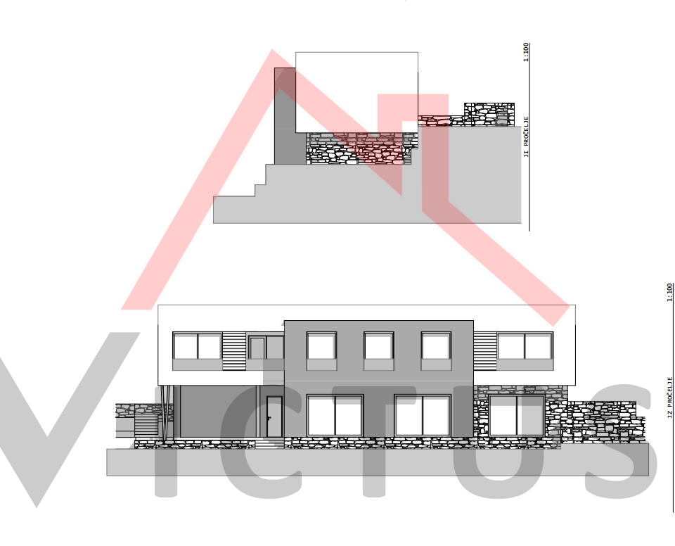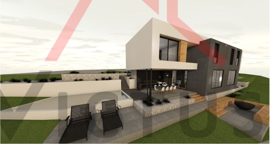 Zemljište površine 627 m2 se prodaje s projektom za samostojeću vilu na dvije etaže s bazenom i krovnom terasom, te za koju je predan zahtjev za izdavanje građevinske dozvole. Vila je neto stambene površine 277 m2, sa 6 spavaćih soba, svaka s vlasitom kupaonicom. Do zemljišta vodi asfaltirani prilaz. Prema projektu, raspored vile je sljedeći: