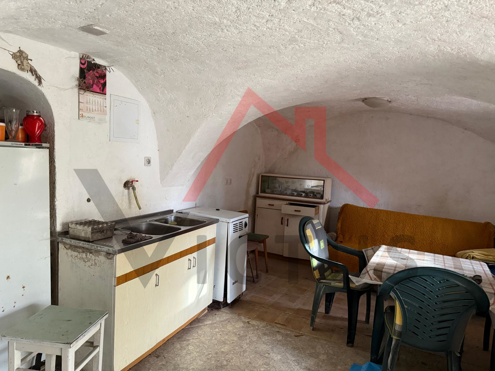 U prizemlju je konoba s autohtonim voltama, koja se može urediti u zaseban manji stan. Na katu se nalaze hodnik, soba i kuhinja.