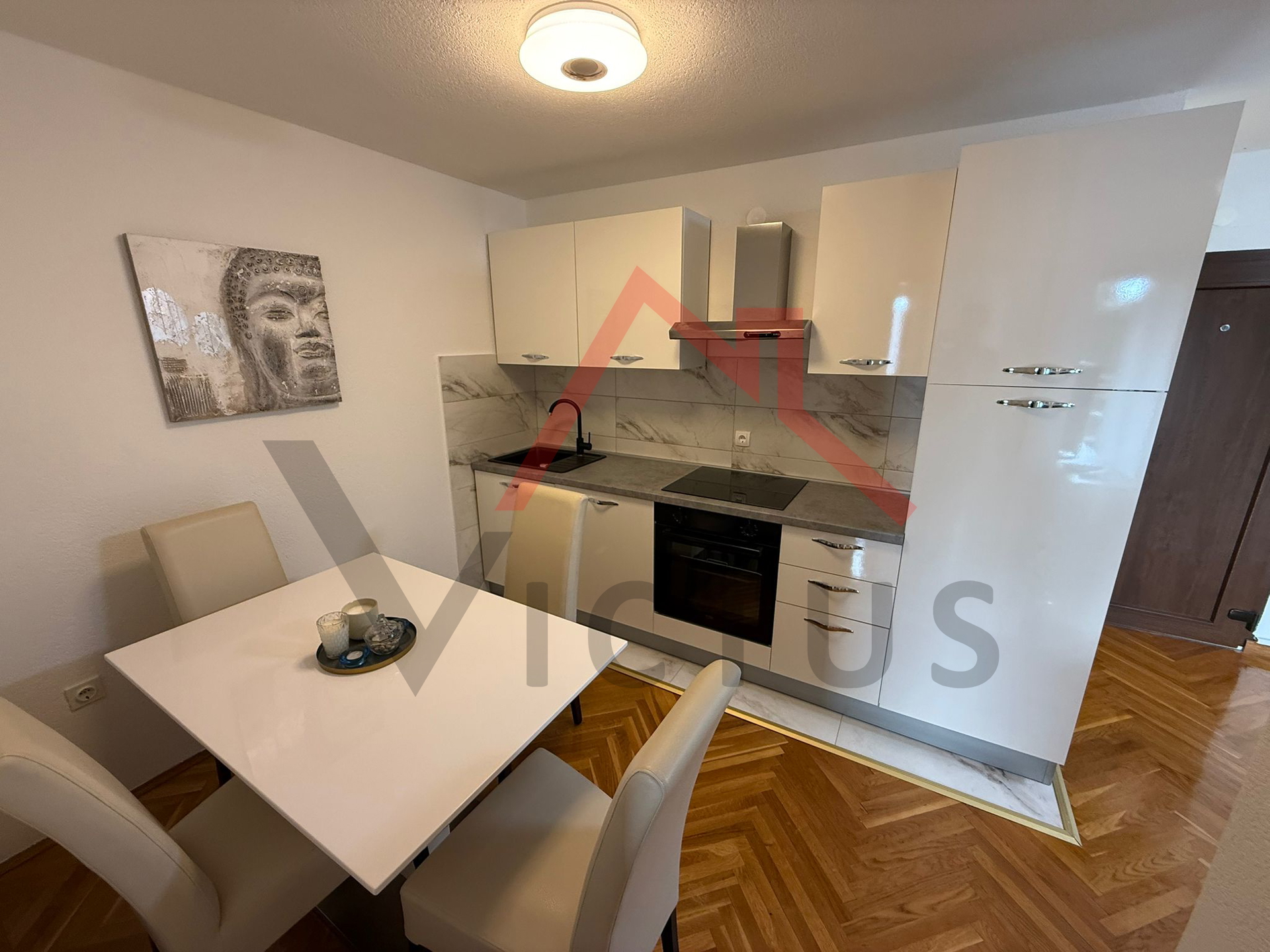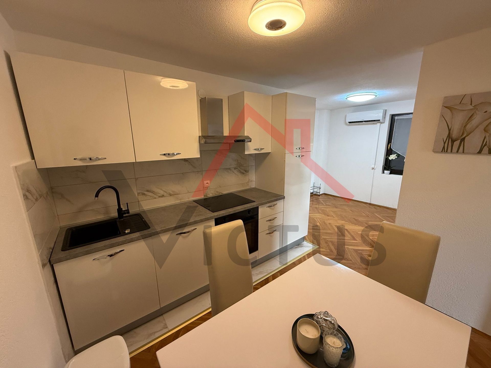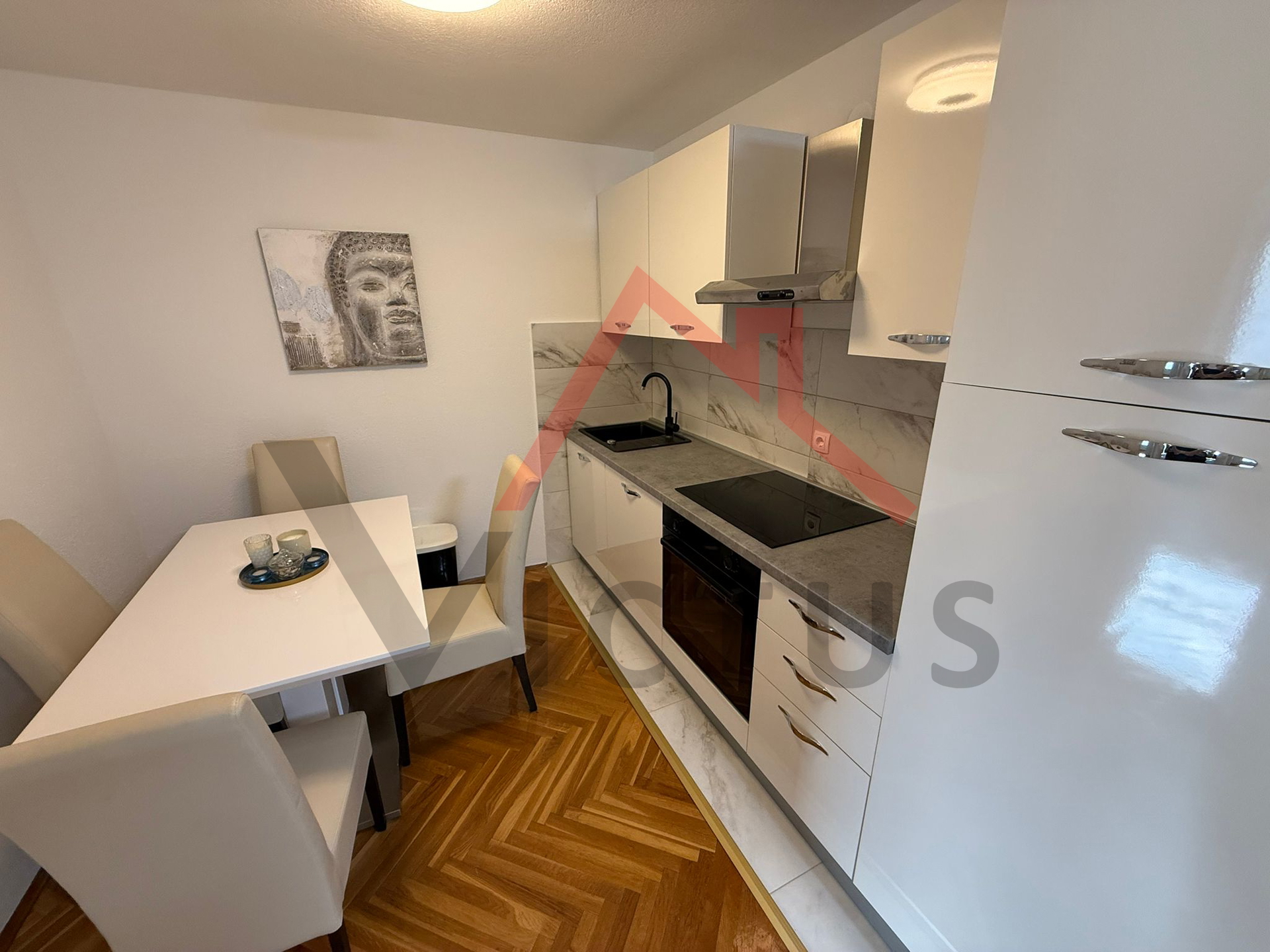 Stan se sastoji od dnevnog boravka, kuhinje s blagovaonicom, spavaće sobe, kupaonice te balkona, ukupne površine 45 m2. Parkirno mjesto se nalazi unutar okućnice objekta. U stanu se nalazi nova kuhinja, kupaonica je kompletno renovirana, te je odmah useljiv i spreman za korištenje.