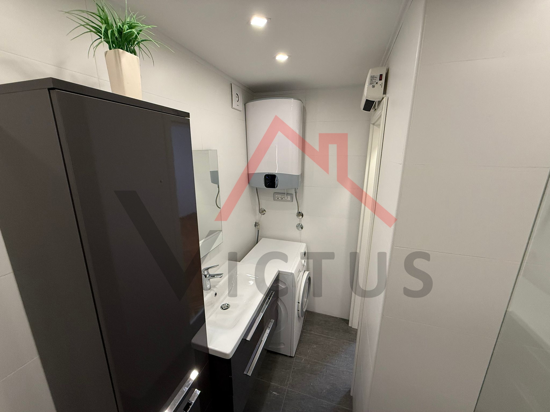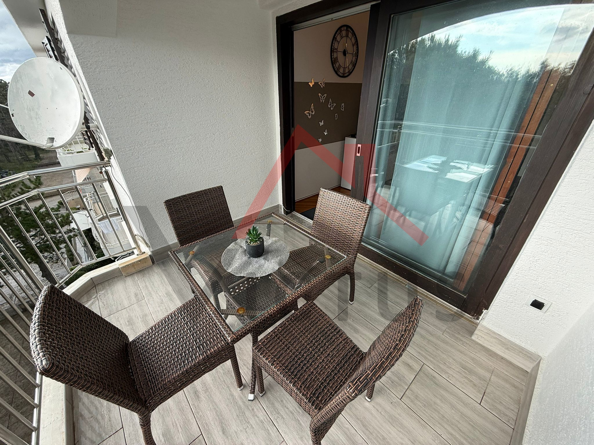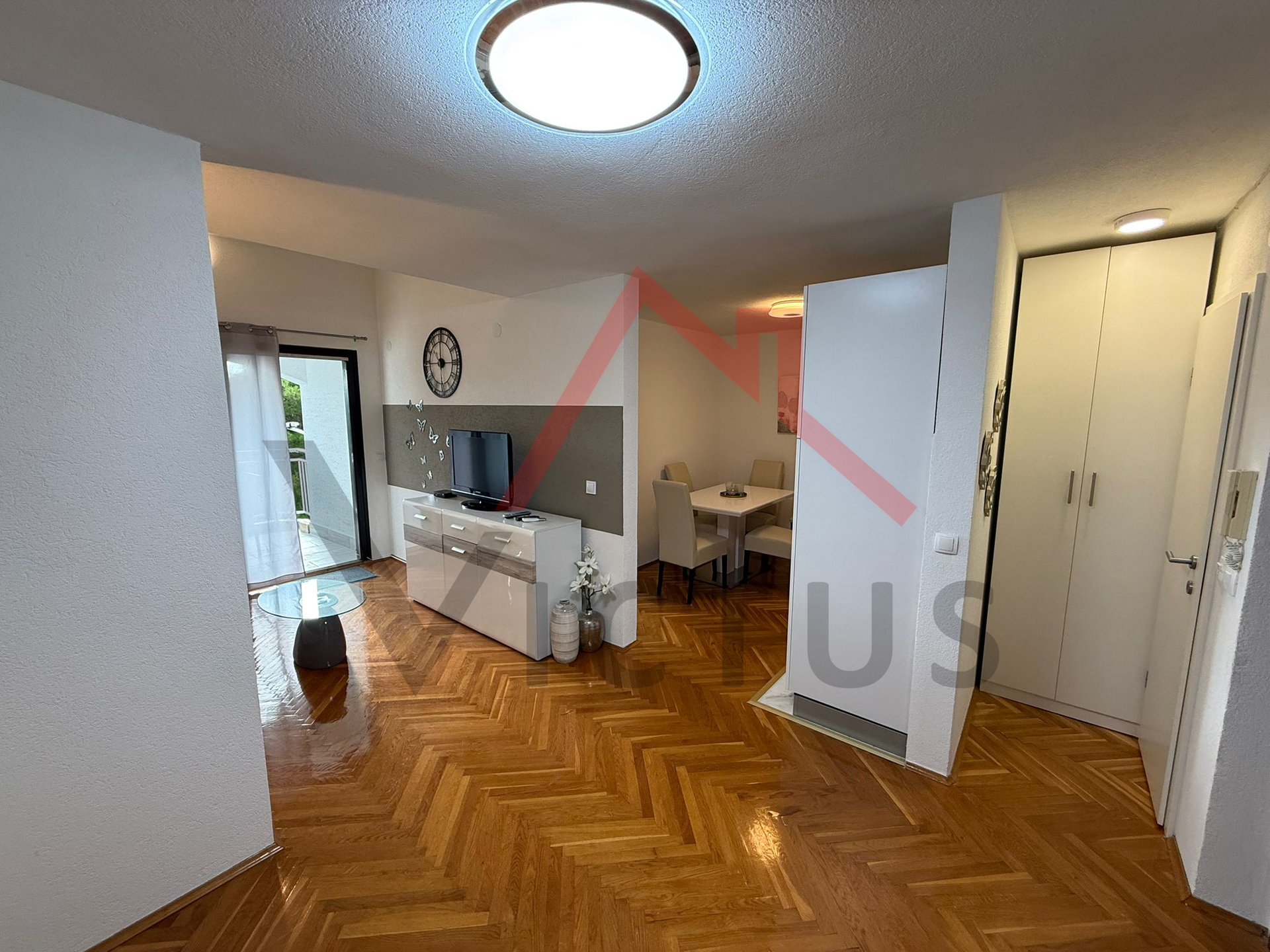 Stan se sastoji od dnevnog boravka, kuhinje s blagovaonicom, spavaće sobe, kupaonice te balkona, ukupne površine 45 m2. Parkirno mjesto se nalazi unutar okućnice objekta. U stanu se nalazi nova kuhinja, kupaonica je kompletno renovirana, te je odmah useljiv i spreman za korištenje.