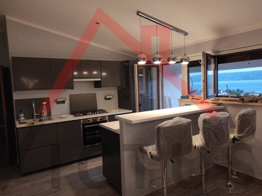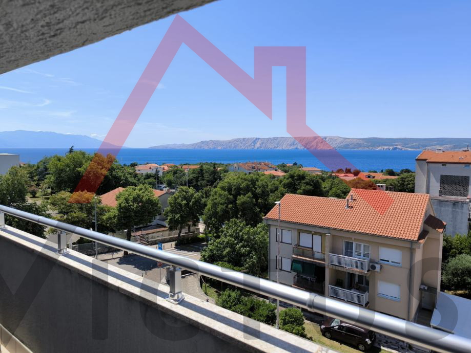 L'appartamento è composto da ingresso, cucina, soggiorno, camera da letto, ripostiglio e loggia. Comprende un posto auto all'interno della proprietà. Dall'appartamento si gode una fantastica vista aperta sul mare e sull'isola di Krk.